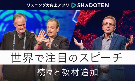 シャドテンでは、英語学習の動機付けとなるような魅力的なコンテンツを毎月追加しています。特にTED Talksは、学びや気づきを得られるとしてビジネスパーソンに大変人気の教材。今回の新教材も、世界最前線で活躍するスピーカーの“生きた英語”をシャドーイングすることで、TED Talksならではの深い洞察と豊かな学びを得ながら英語学習することができます。