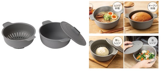 「土鍋風シリコーンポット」は、電子レンジで手軽に調理ができる時短調理容器です。ラーメンや一人分の鍋料理、温野菜など忙しい日常生活の中で、簡単に美味しい食事を楽しむための新しい選択肢としてピッタリです。