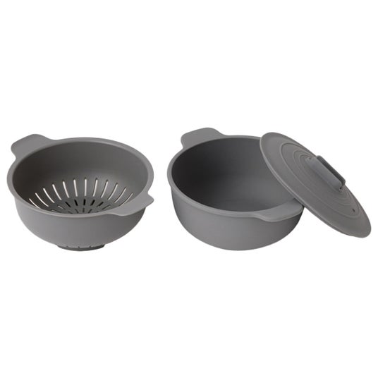 水切りが簡単にできるザルが付属しており、電子レンジ対応なので下ごしらえや蒸し調理にも使用可能です。オーブンでもご使用が可能なので、調理の幅がぐんと広がります。食洗器対応でお手入れも簡単です。